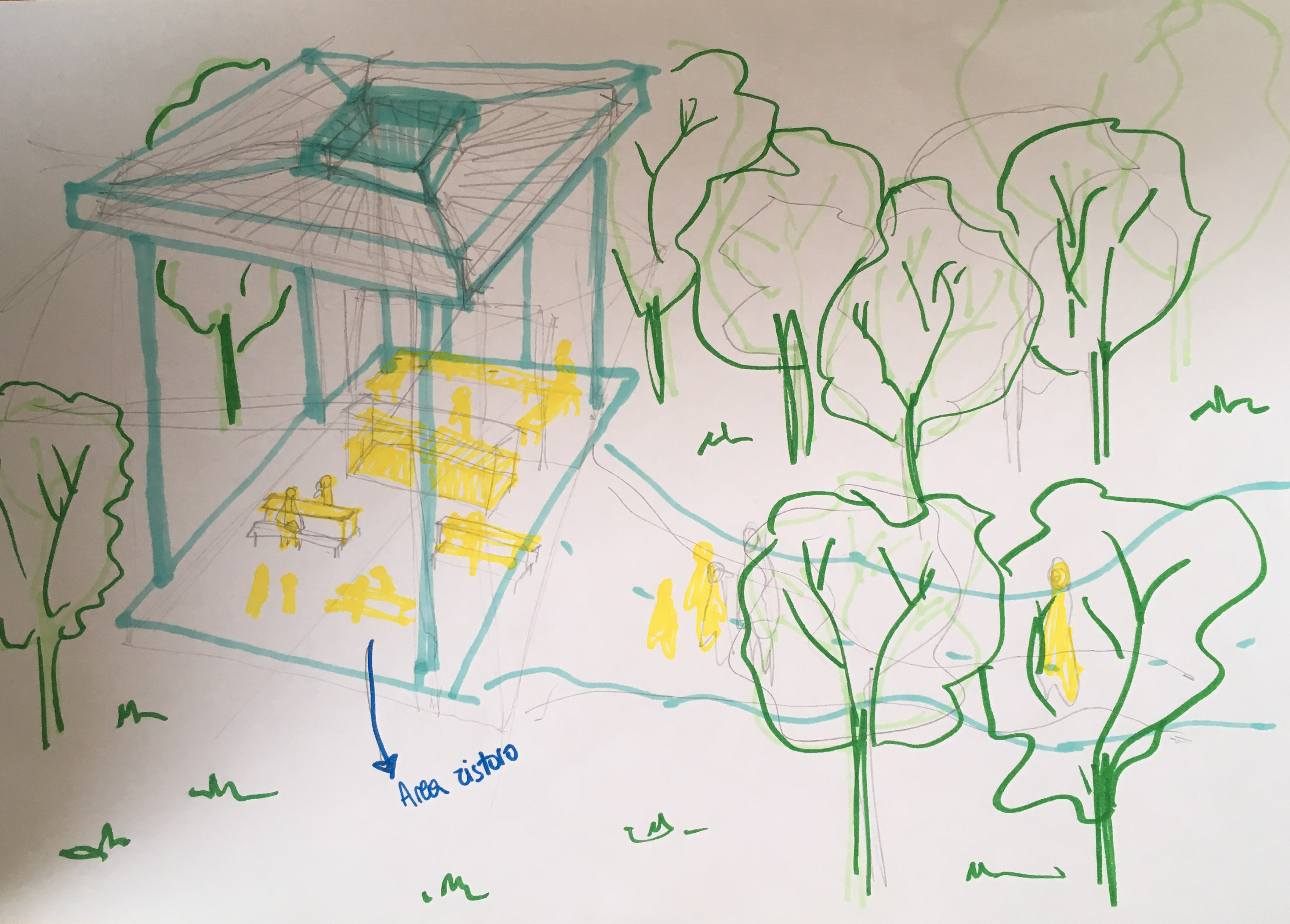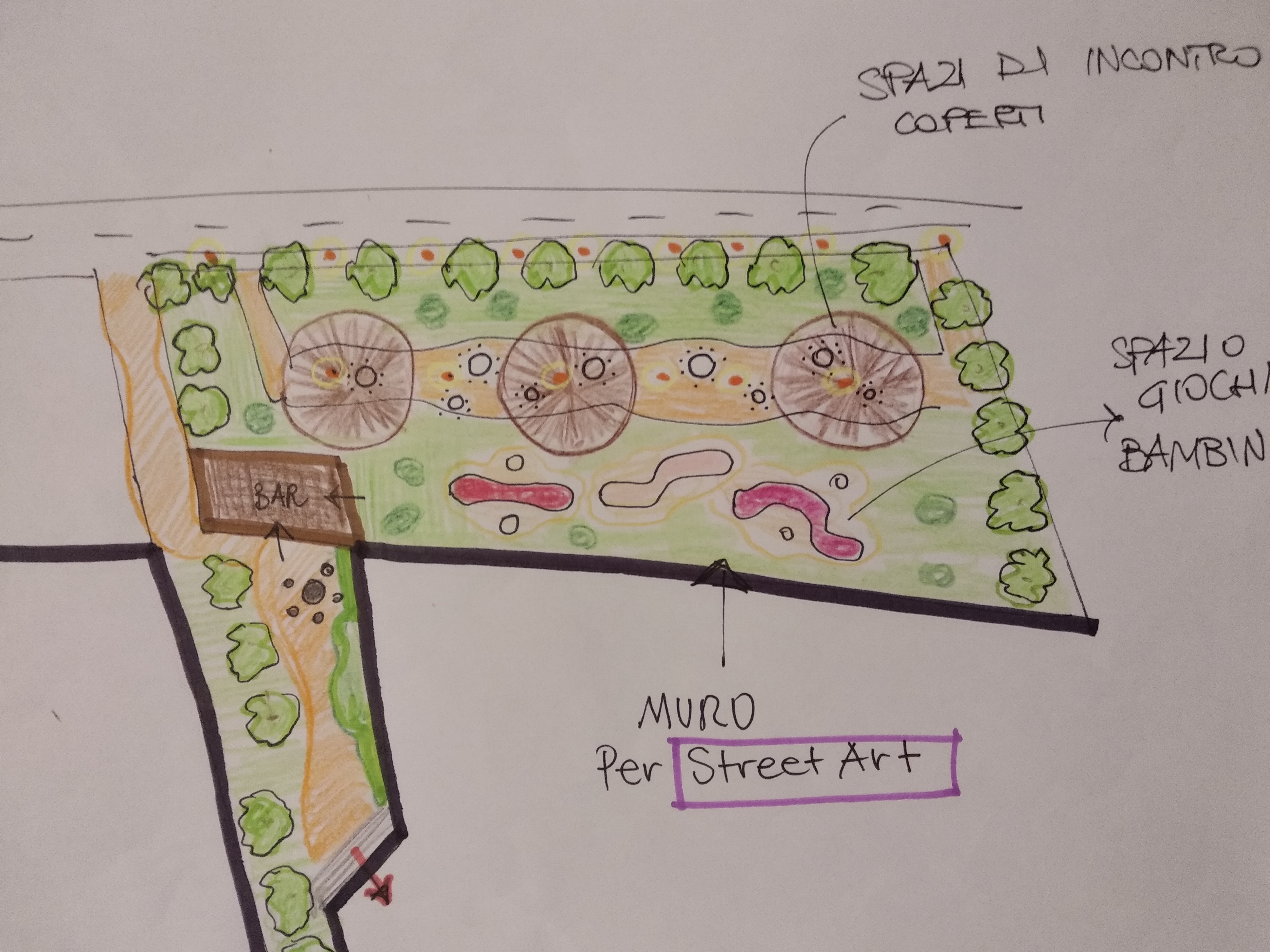 Schizzo progettuale ad opera di Giovanni Michelucci del "Giardino degli Incontri"