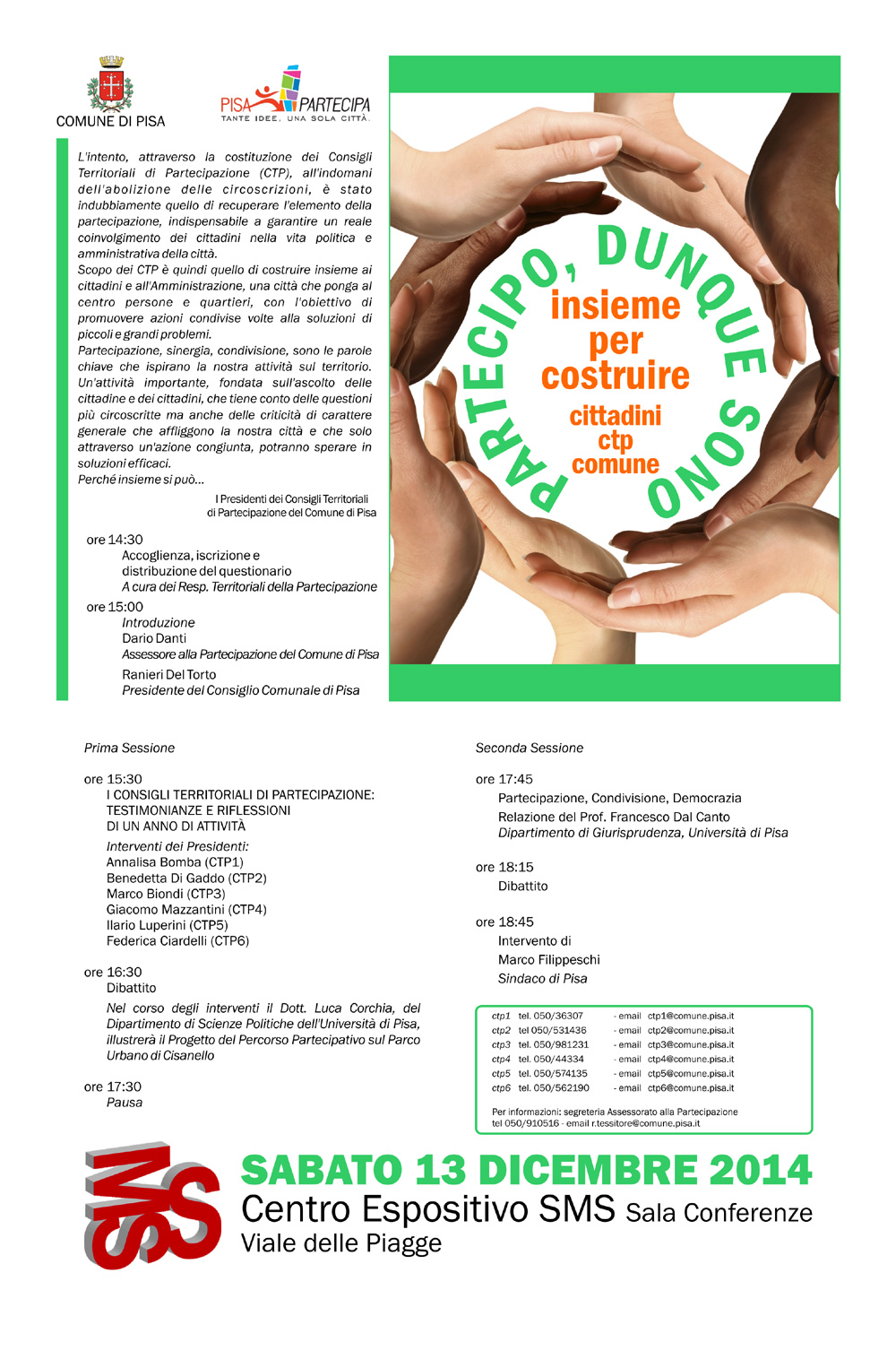 1) Aggiornamento Responsabili dei Consigli Territoriali di Partecipazione (CTP), da parte dei ricercatori del Dipartimento di Scienze Politiche (DiSP UNIPI);